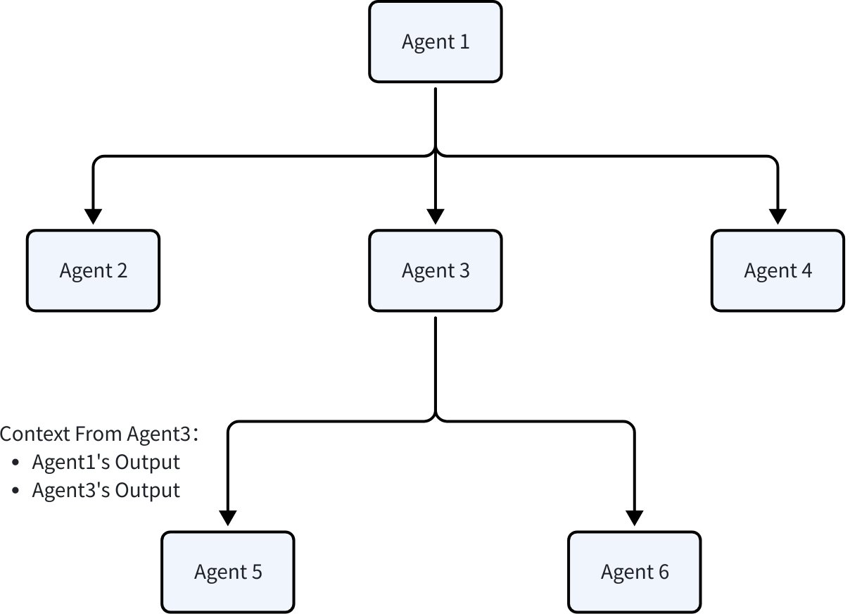 • Output passing: Each Agent in the configuration can obtain the complete input of Sequential Agent and outputs of preceding Agents.